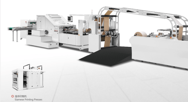 Fully Automatic Flat Bottom Paper Bag Making Machine With Printing Unit Inline